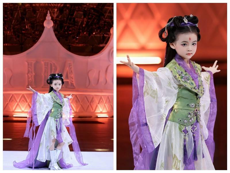 在「造极」主题展示环节,夏夏身着紫绿交融的古风仙裙惊艳亮相:柔白纱袖绣着细密古韵纹样,淡紫流苏如瀑布垂落衣间,青绿腰封衬出灵动身段,发髻簪着精巧古饰,活脱脱从国风画卷里走出来的小仙子。走秀时,她步履轻盈却满是古典气韵,舒展广袖似振翅欲飞的蝶,转身、抬手间白纱流紫层层漾开,每一个姿态都把古风的婉约与灵动演绎到极致,仿佛正借着秀台,把一段雅致的古典故事娓娓道来,眼神里的专注与灵气,让整个舞台都浸满了国风诗意。